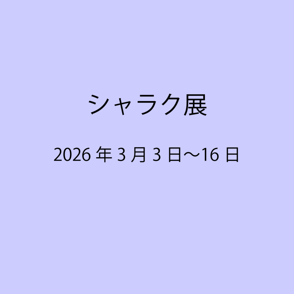 シャラク展開催期間:2026年3月3日〜3月16日開廊時間:10時30分〜18時30分(予定)Open : 10 : 30 a.m. – 6 : 30 p.m. 画像は随時追加していきます。 準備中 準備中
